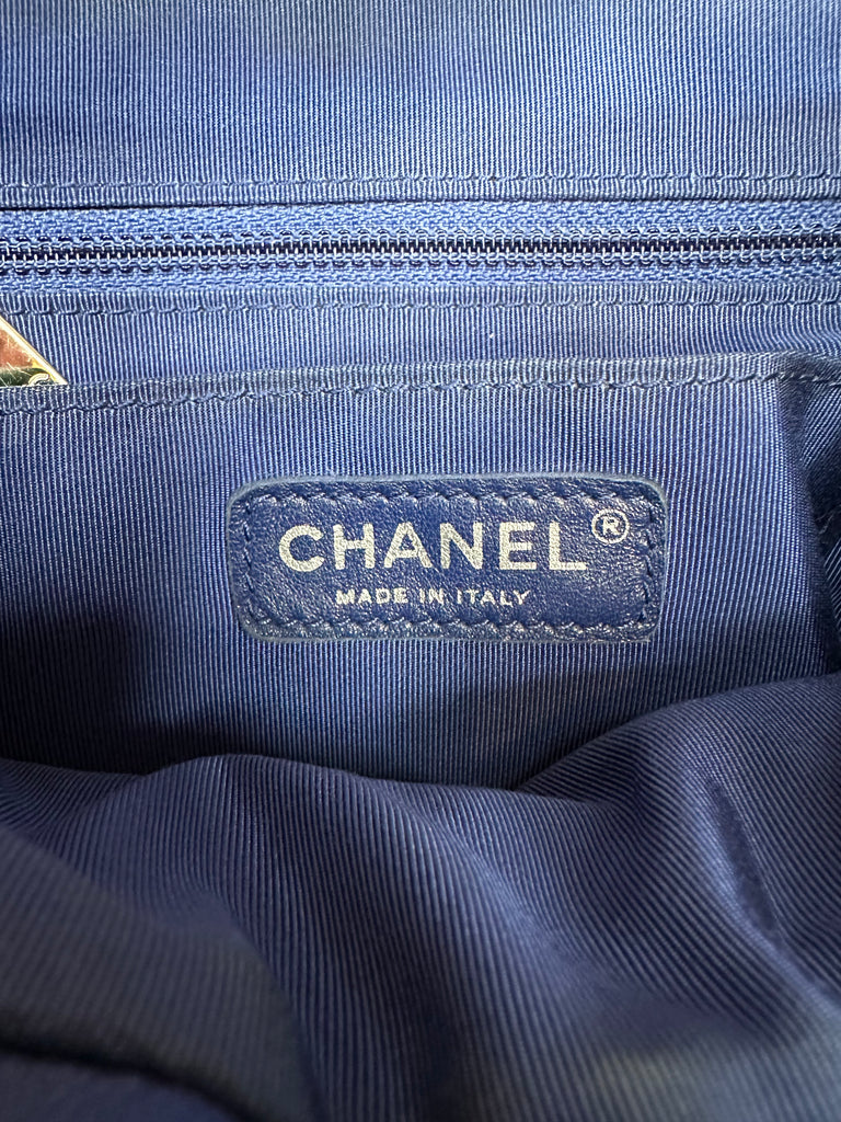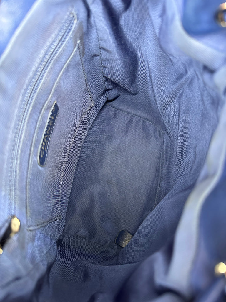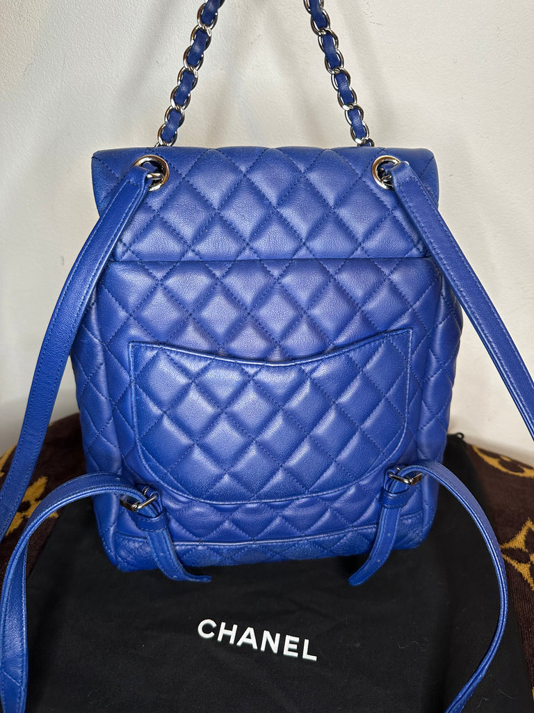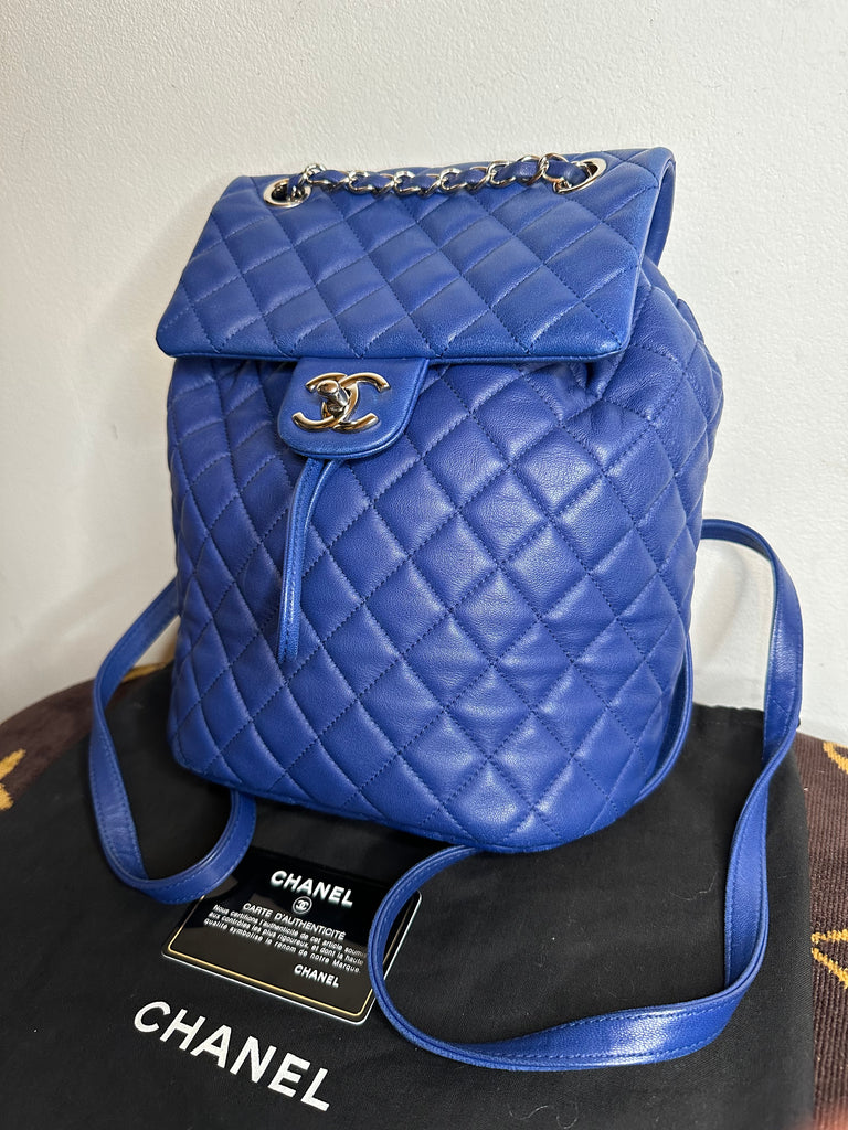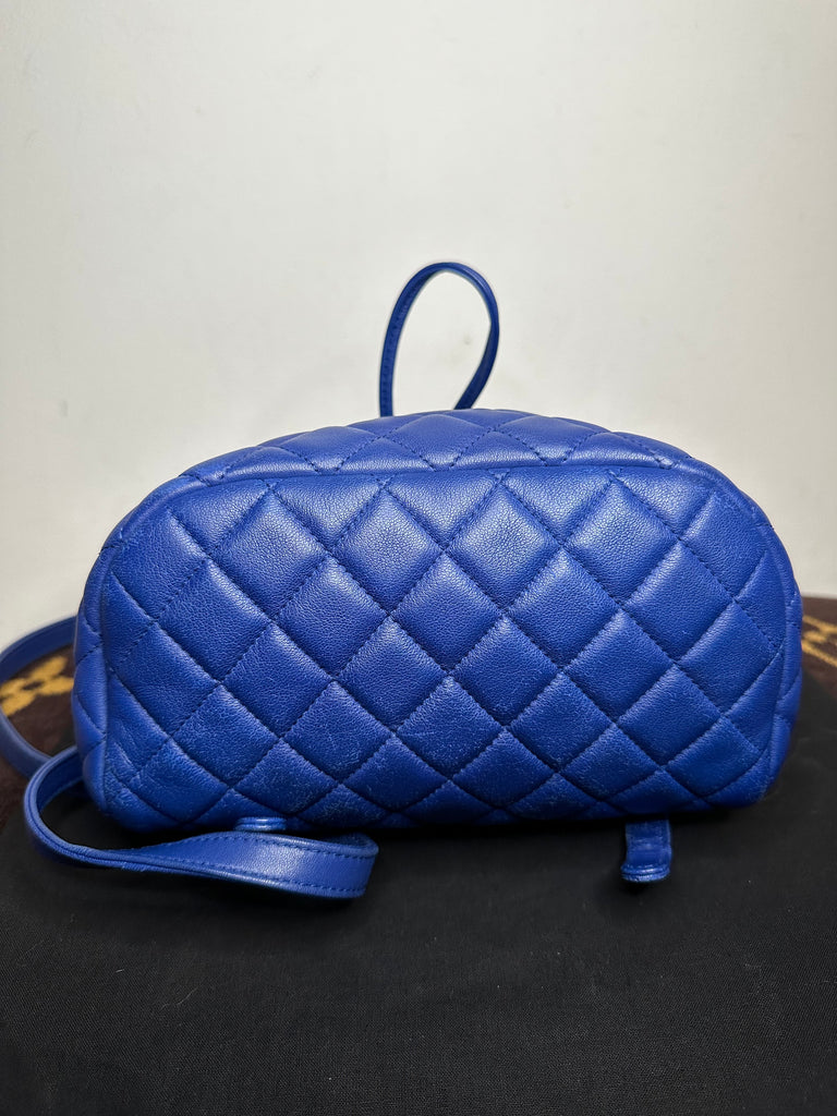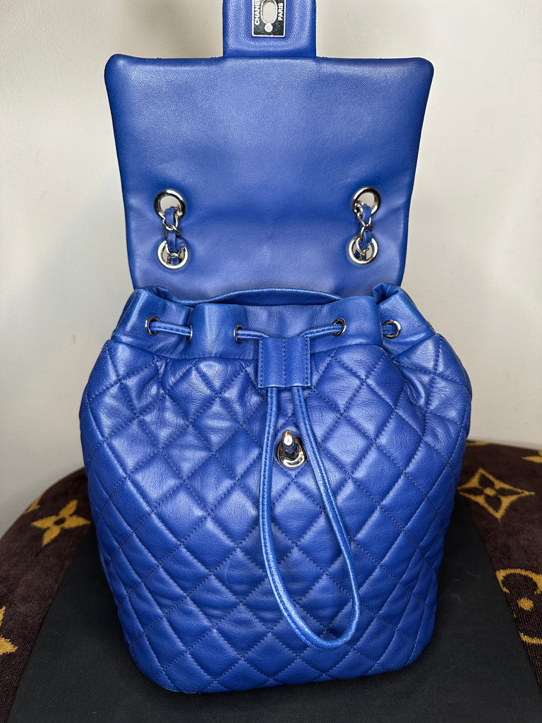 Zainetto Chanel modello Urban Spirit in pelle d'agnello matelassè color blu elettrico e metalleria palladio.