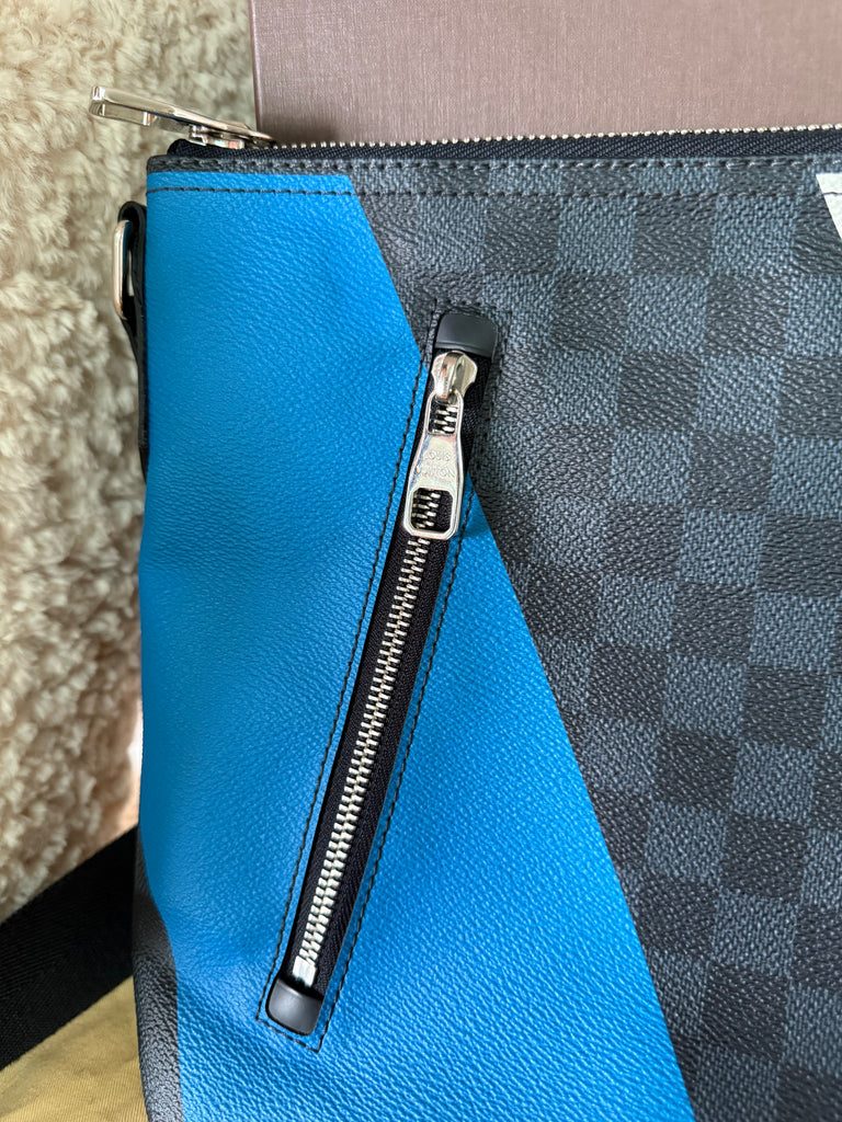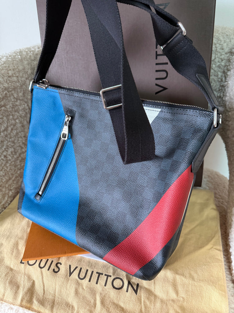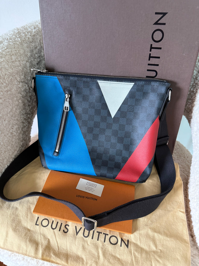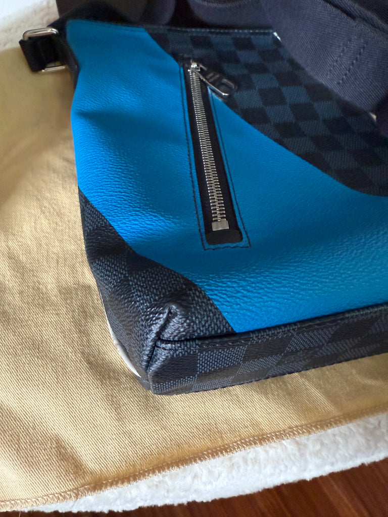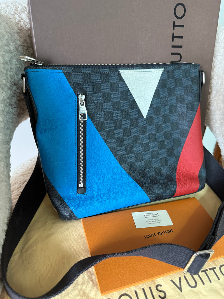 Borsa a tracolla Louis Vuitton modello Mick PM Limited Edition American Cup 2017 in canvas trama damier cobalt e metalleria palladio.
