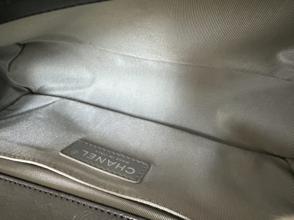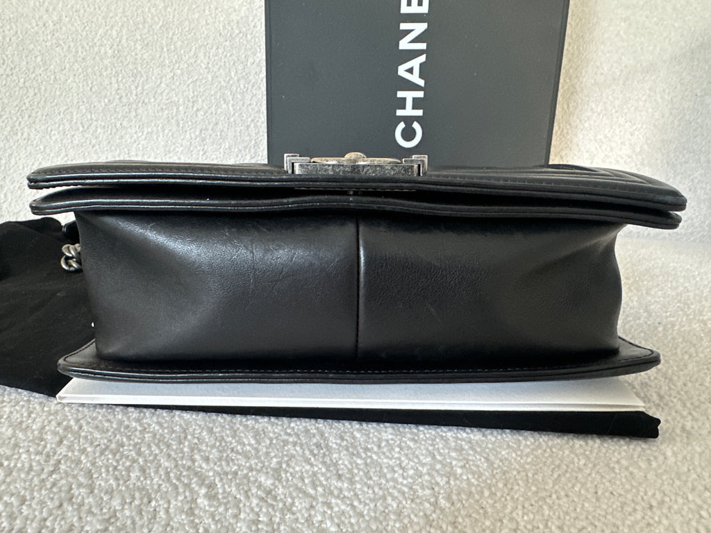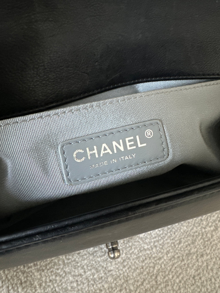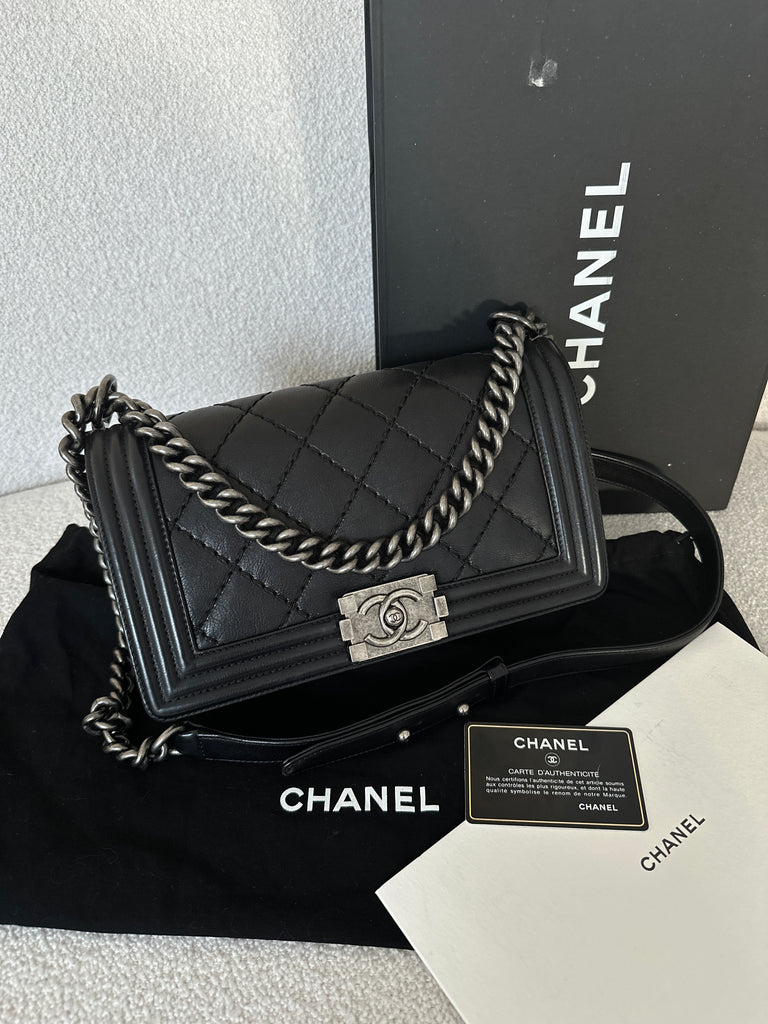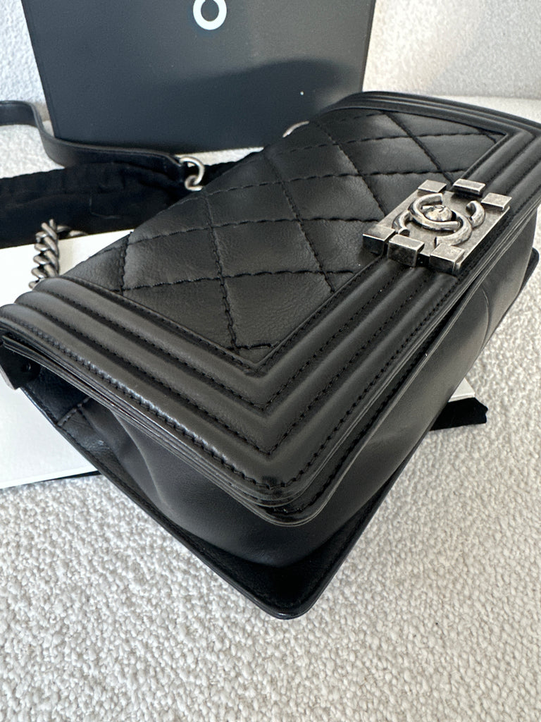 Borsa a spalla e a tracolla Chanel modello Boy Old Medium in pelle di agnello nera metalleria rutenio.