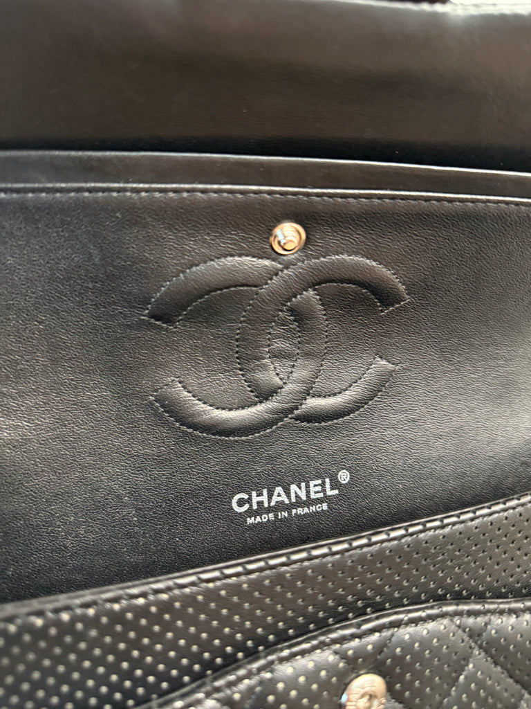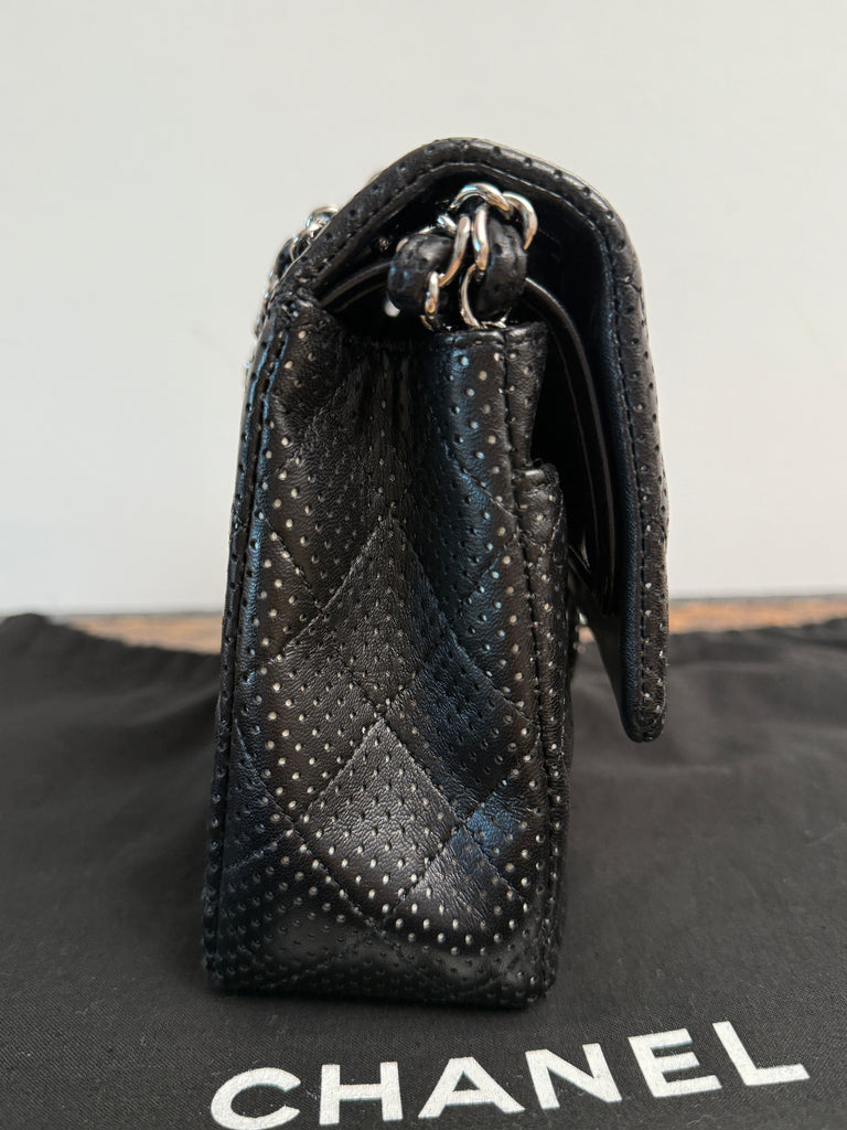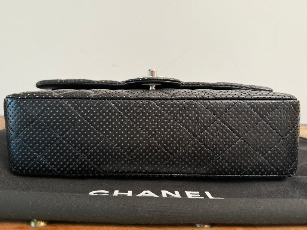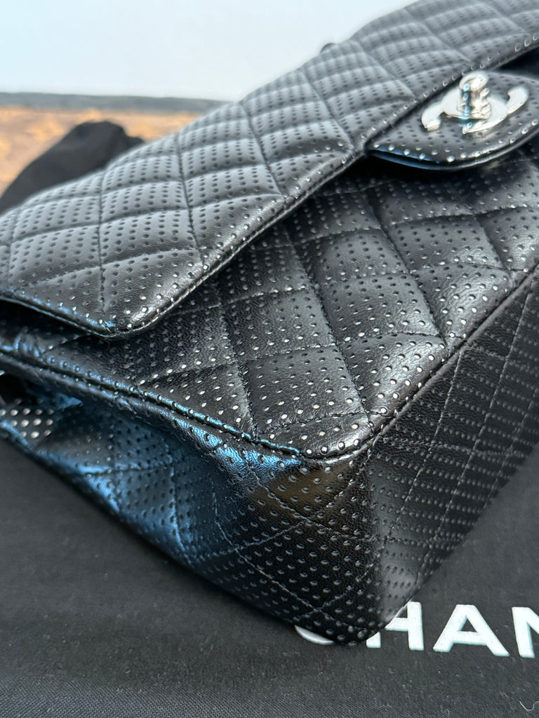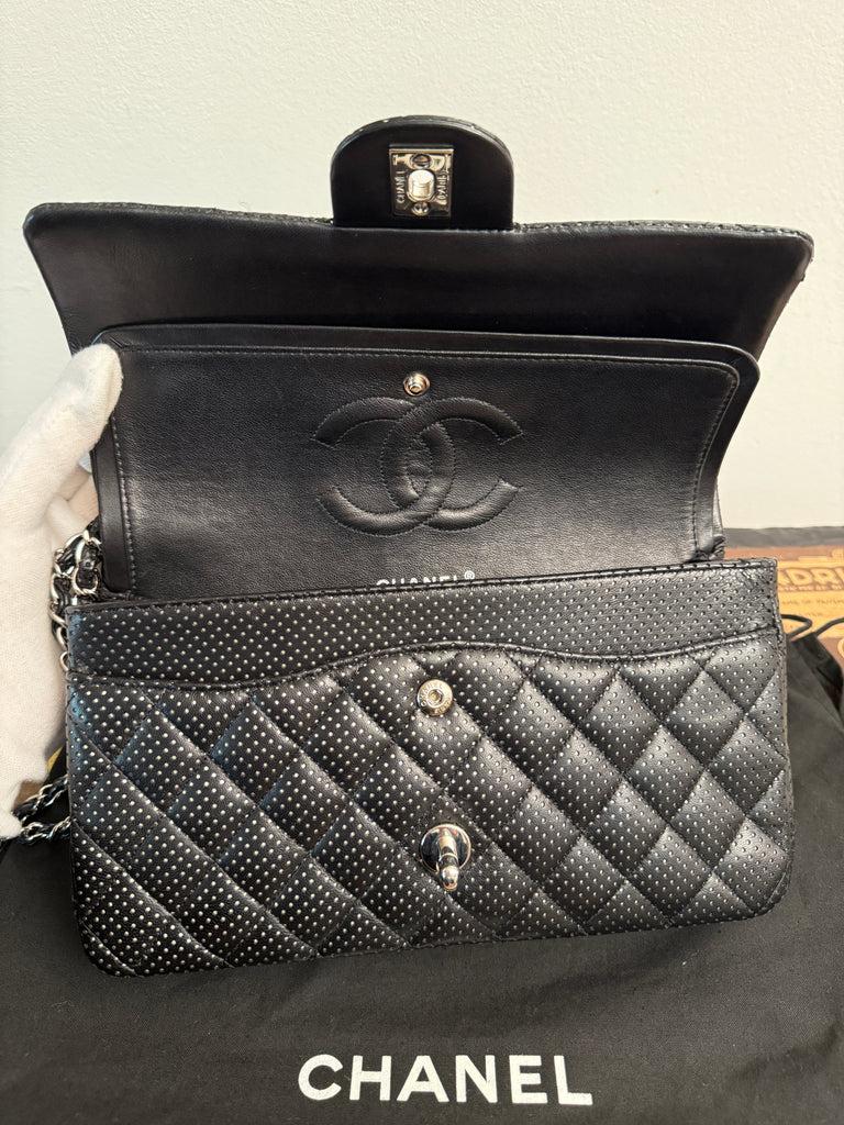 Borsa a spalla Chanel modello Timeless misura media in pelle d'agnello colore nero trama superficiale traforata e metalleria palladio
