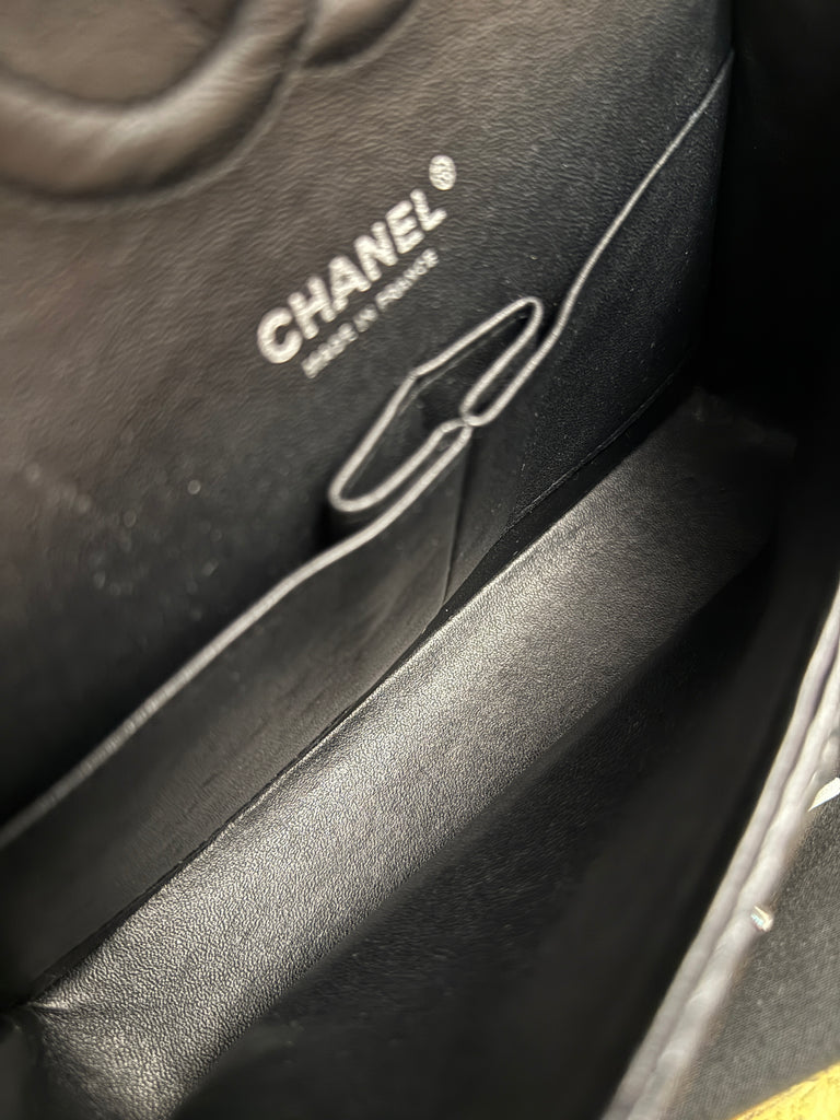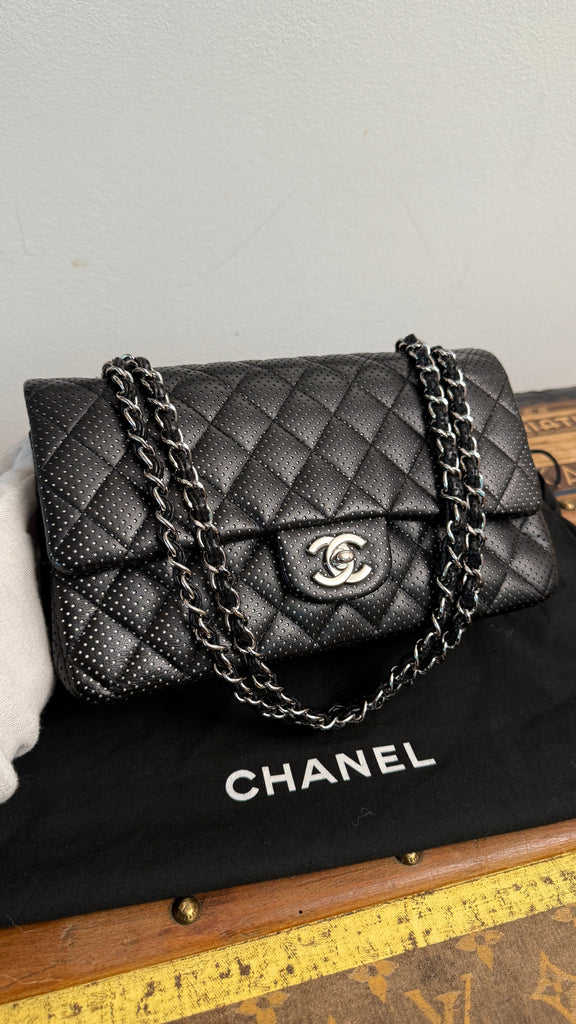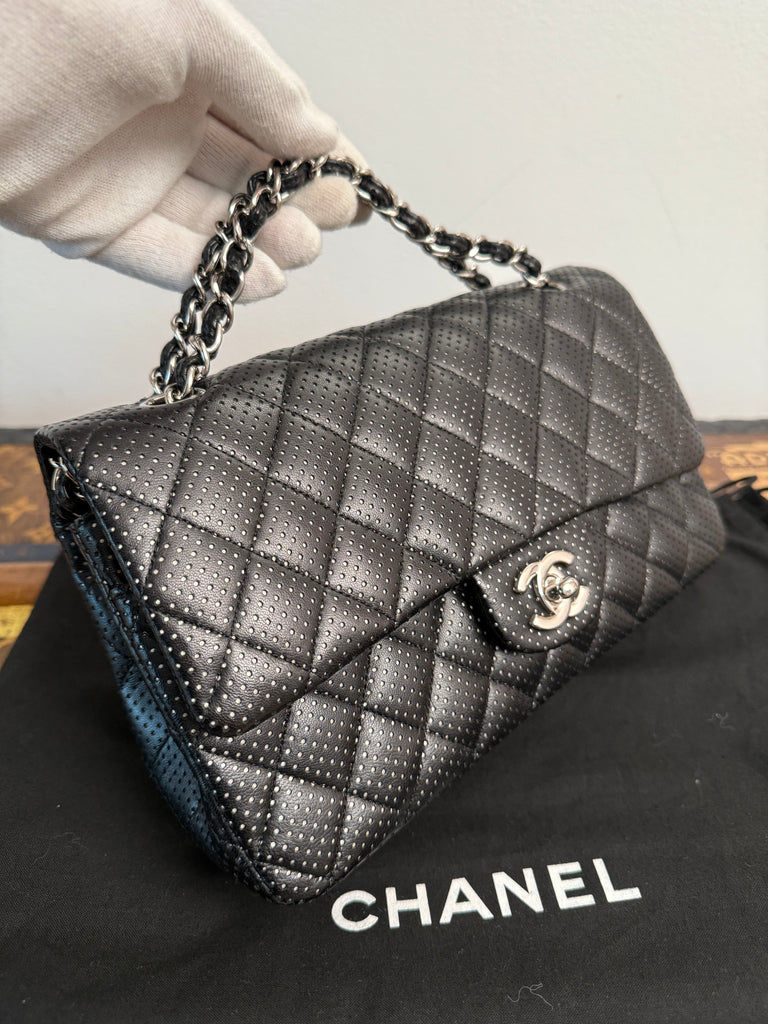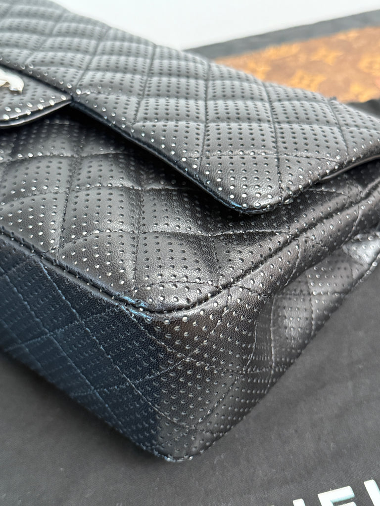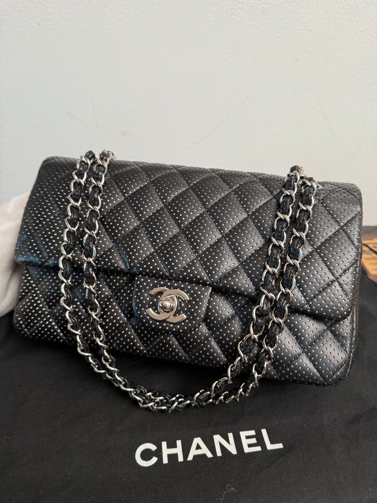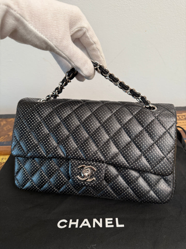 Borsa a spalla Chanel modello Timeless misura media in pelle d'agnello colore nero trama superficiale traforata e metalleria palladio