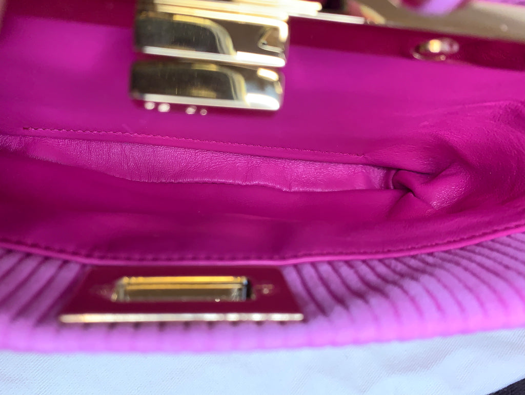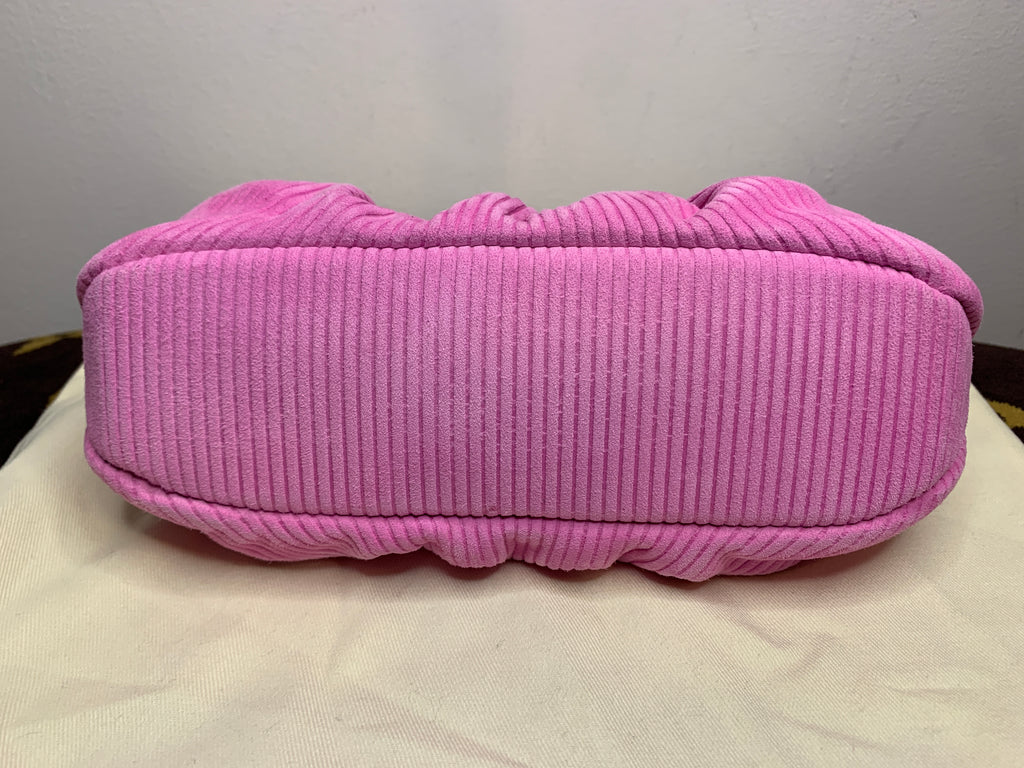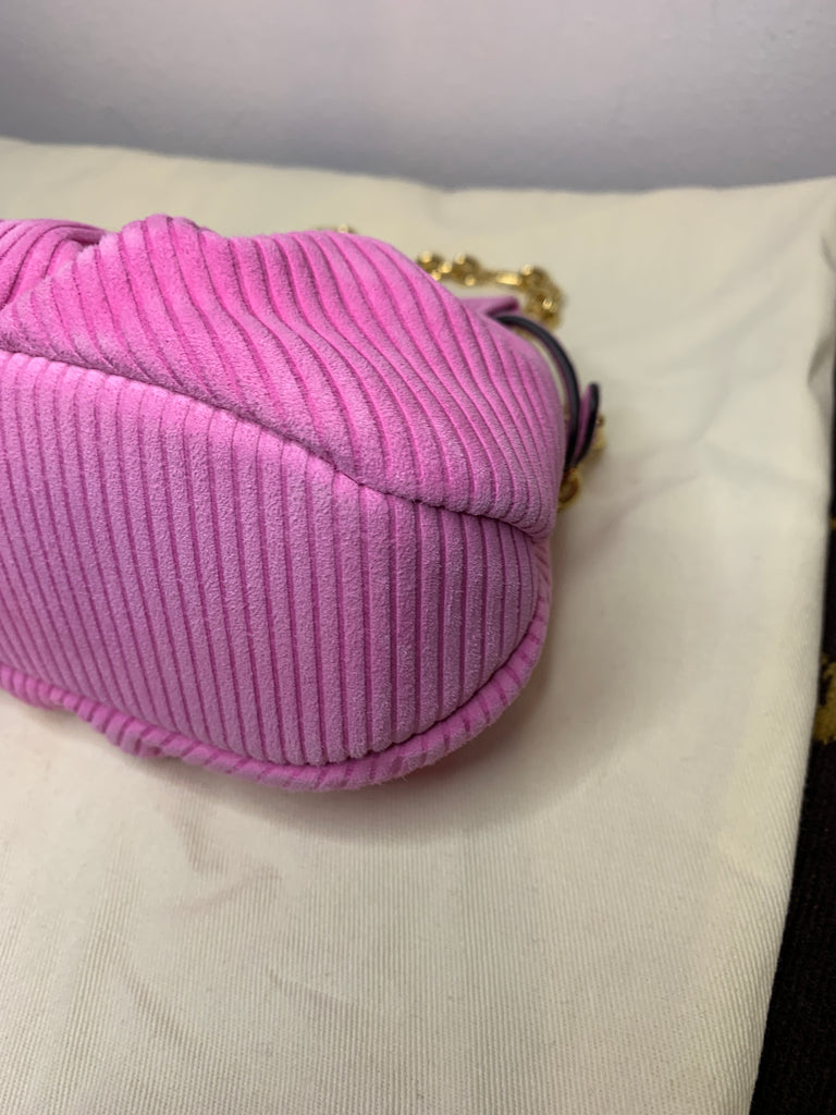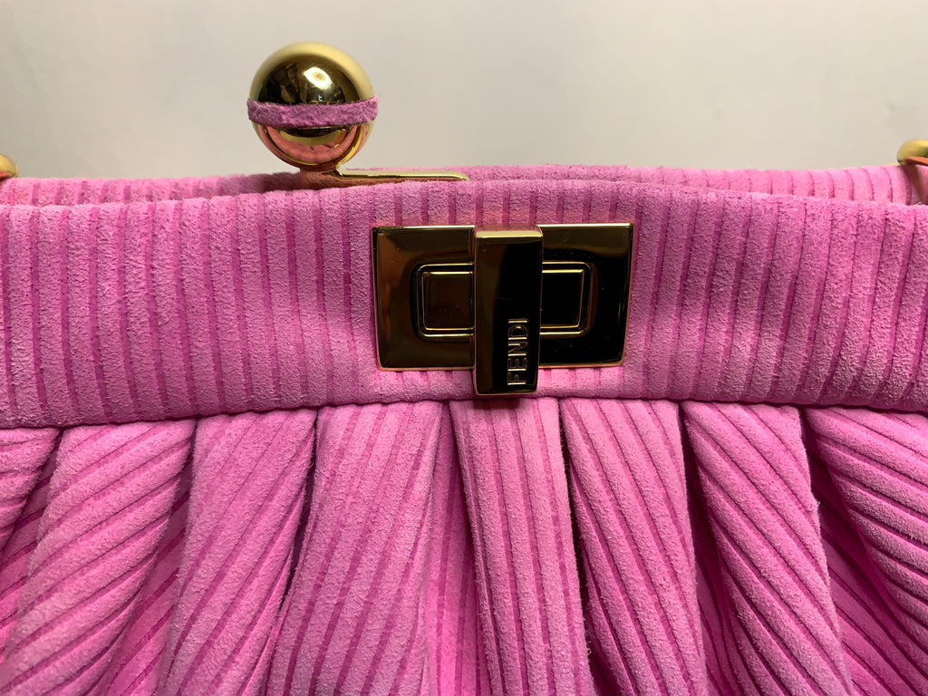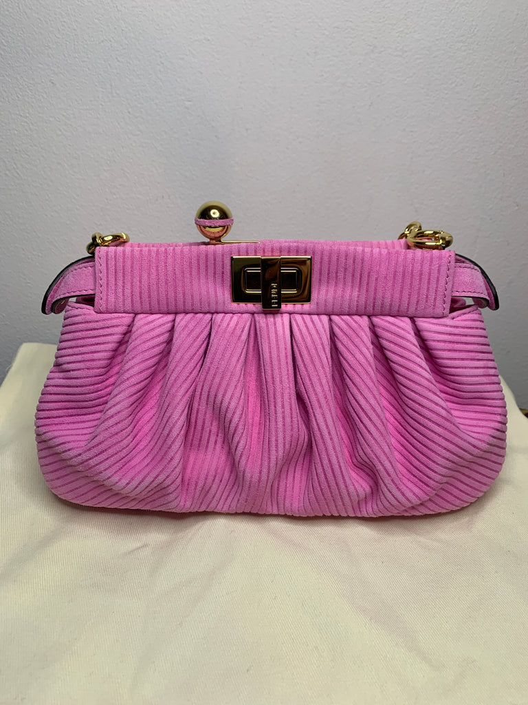 Borsa a spalla con catena Fendi modello Peekaboo Lollipop in pelle scamosciata rosa a righe, metalleria dorata.