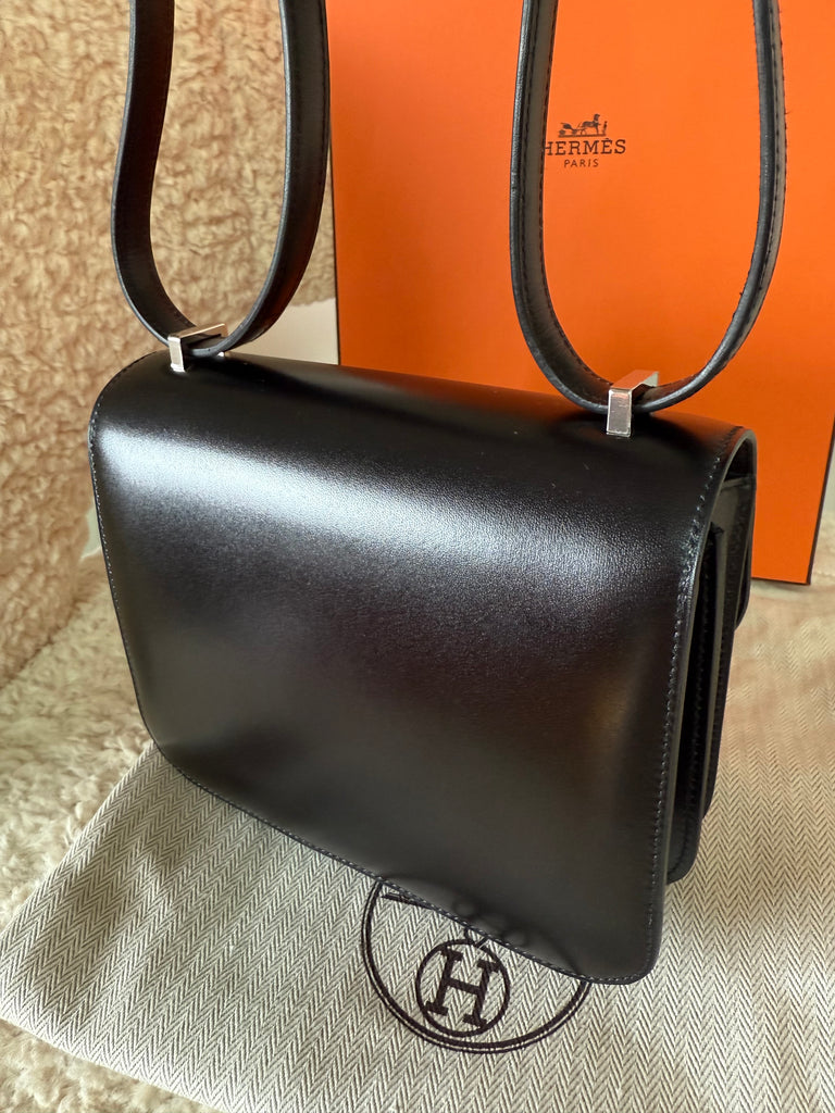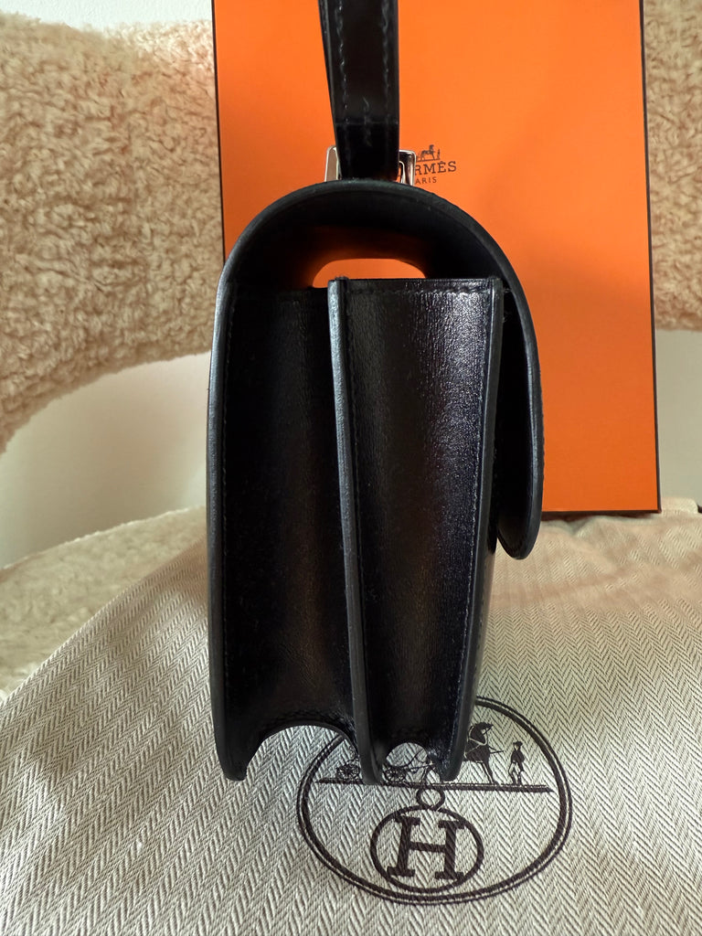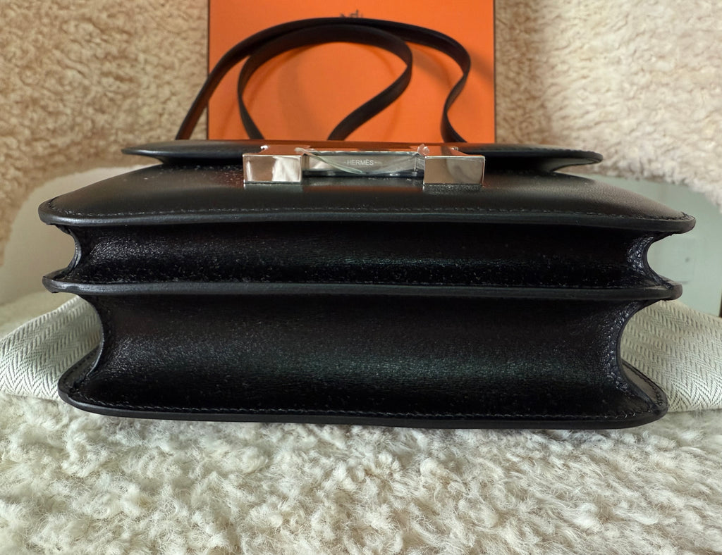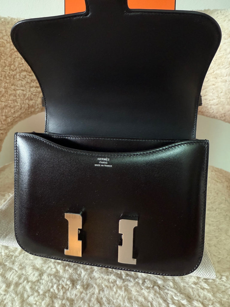 Borsa a spalla Hermès modello Mini Constance 18 in pellame box colore nero metalleria palladio. Stamp "Z” Anno 2025