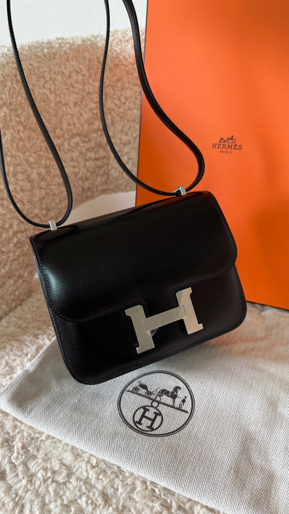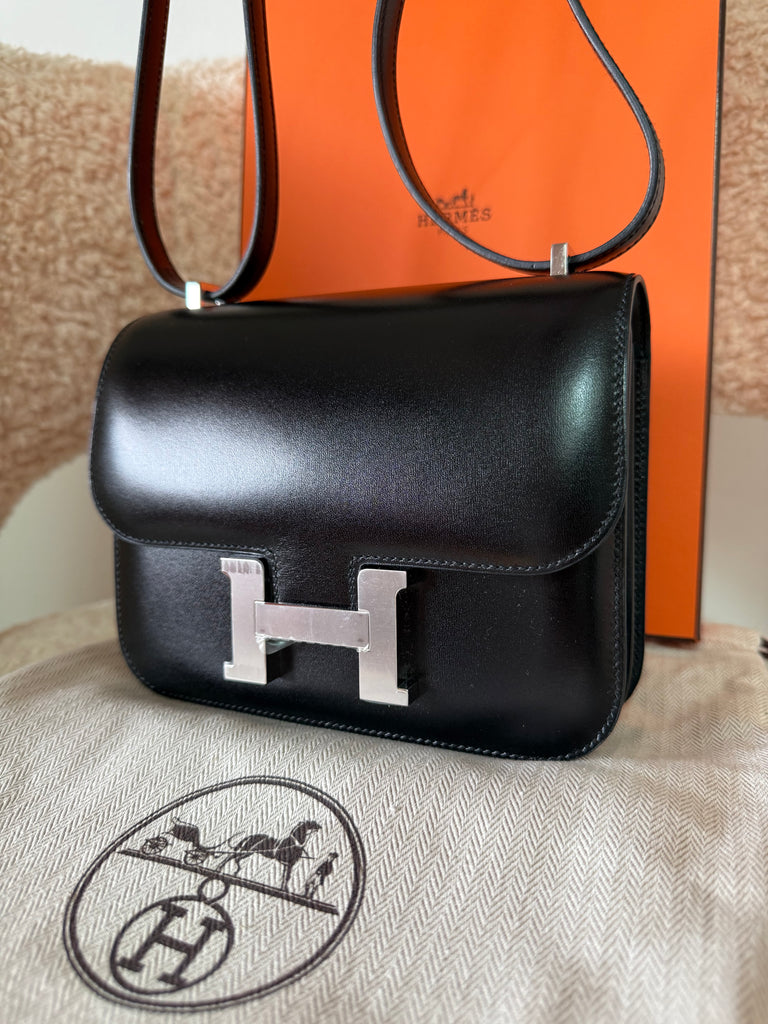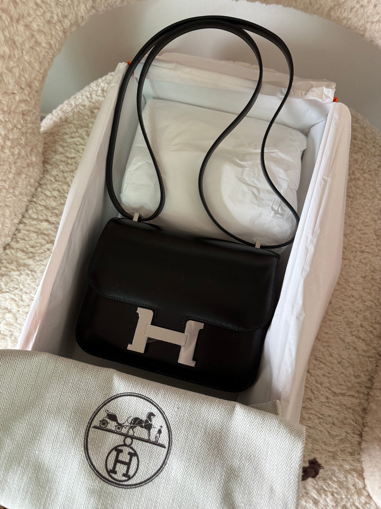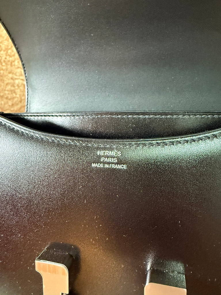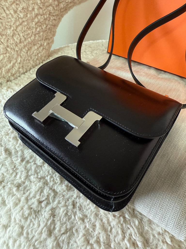 Borsa a spalla Hermès modello Mini Constance 18 in pellame box colore nero metalleria palladio. Stamp "Z” Anno 2025