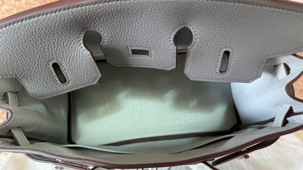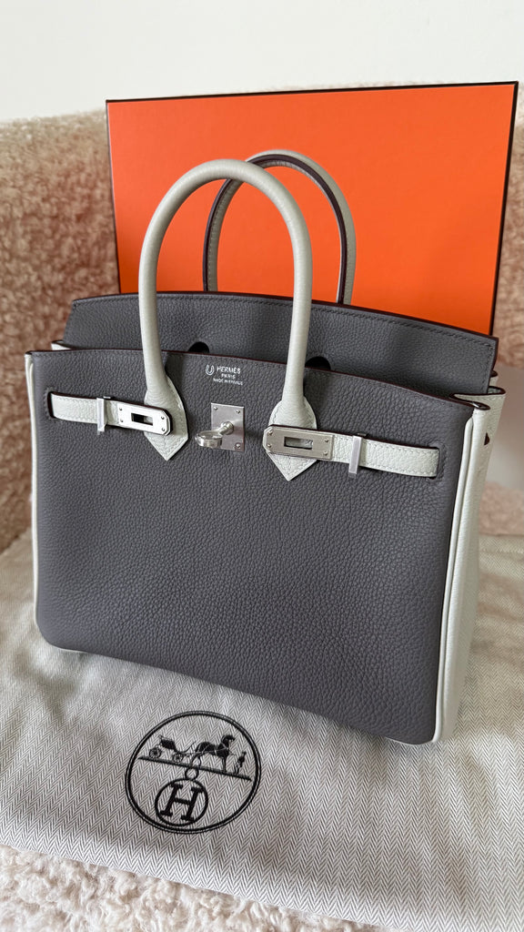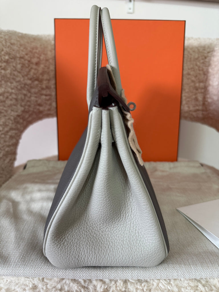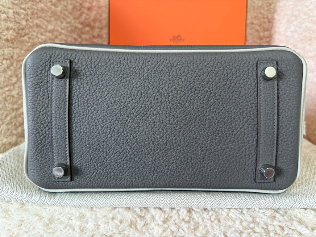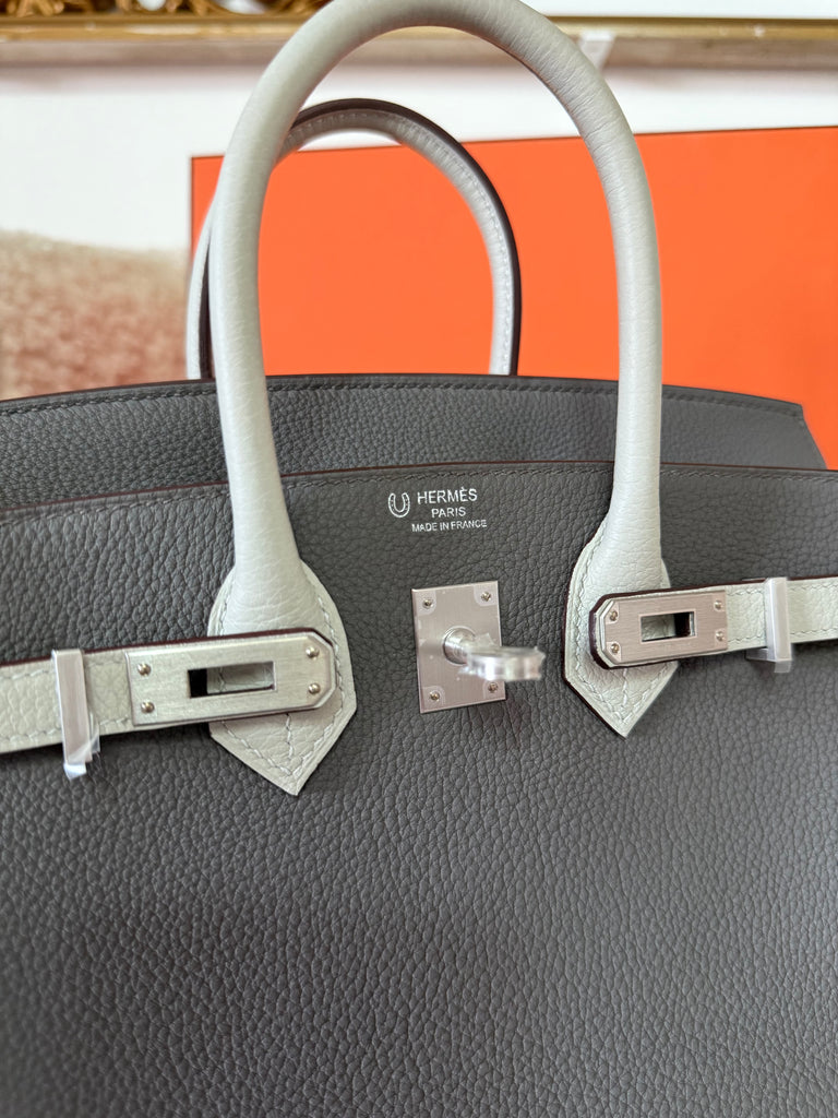 Borsa a mano Hermès modello Birkin 25 Special Order pellame togo colori Etain & Beton metalleria palladio satinata. Pezzo molto raro, da collezione ! Anno 2025