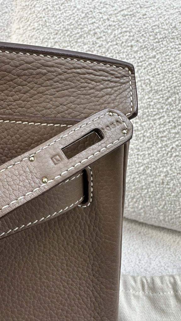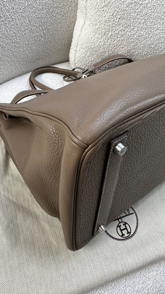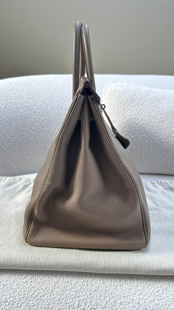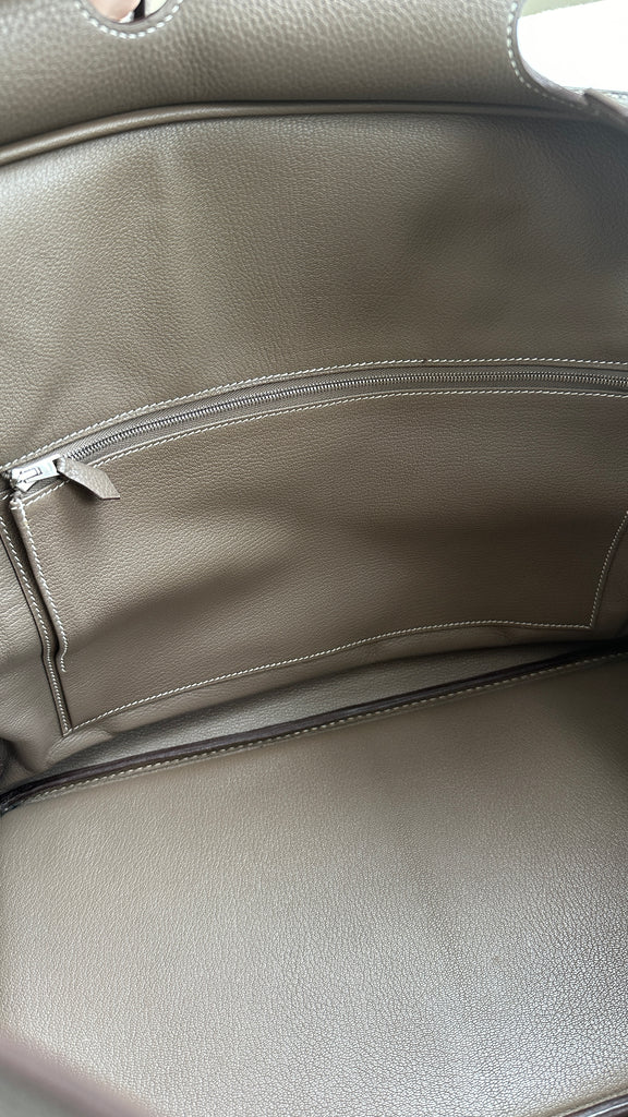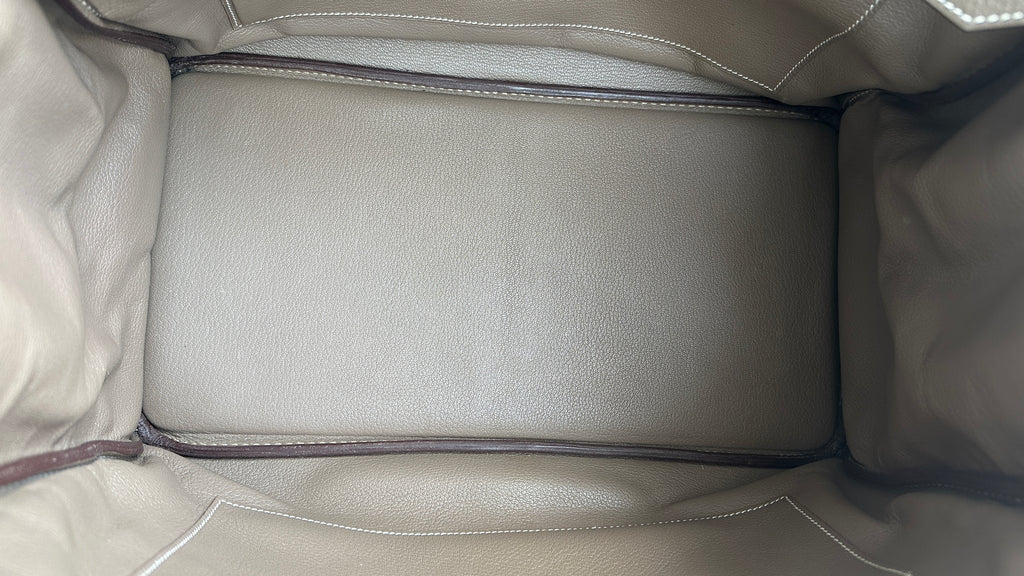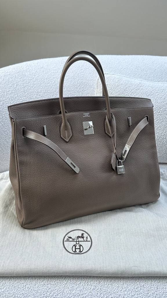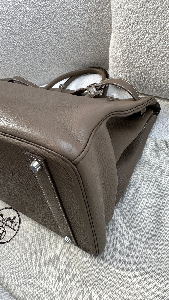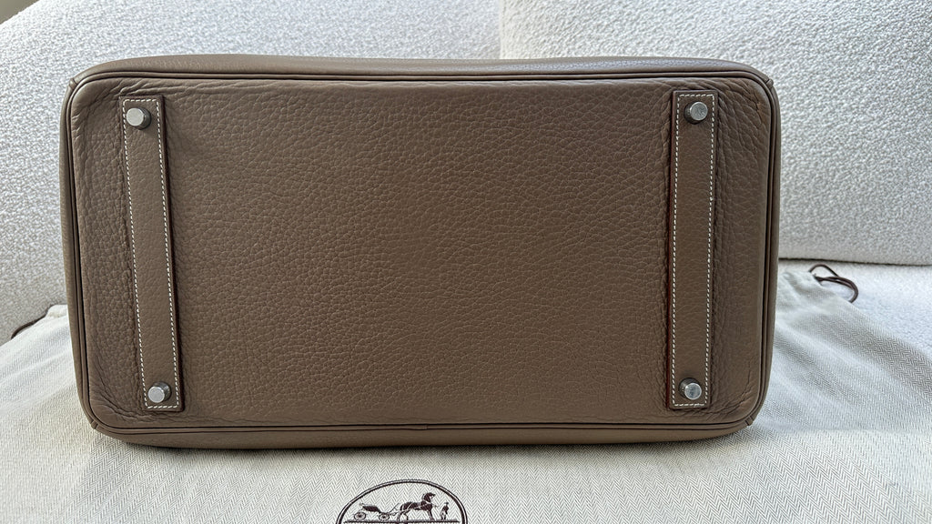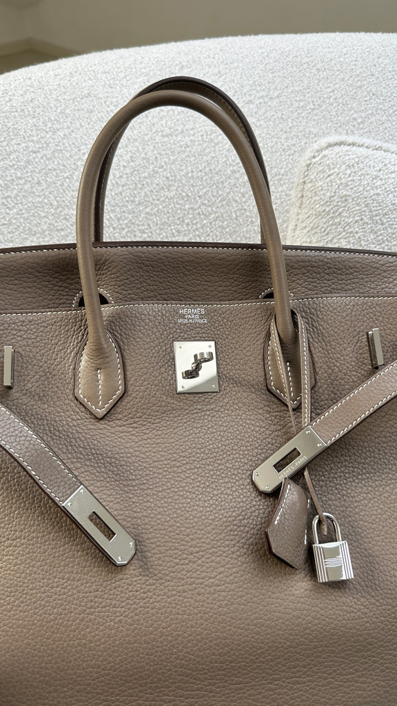 Borsa a mano Hermès modello iconico Birkin misura 40 in pellame Clemence color Etoupe e metalleria palladio. Stamp "L" - Anno 2008.