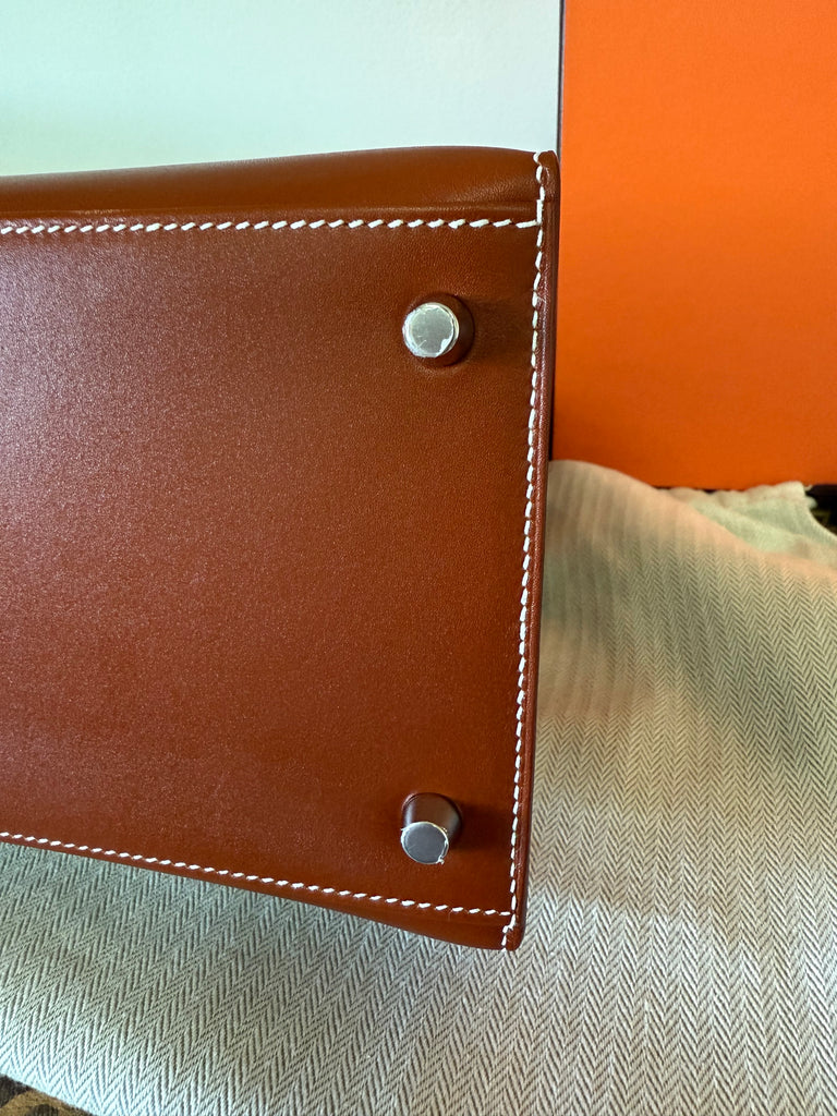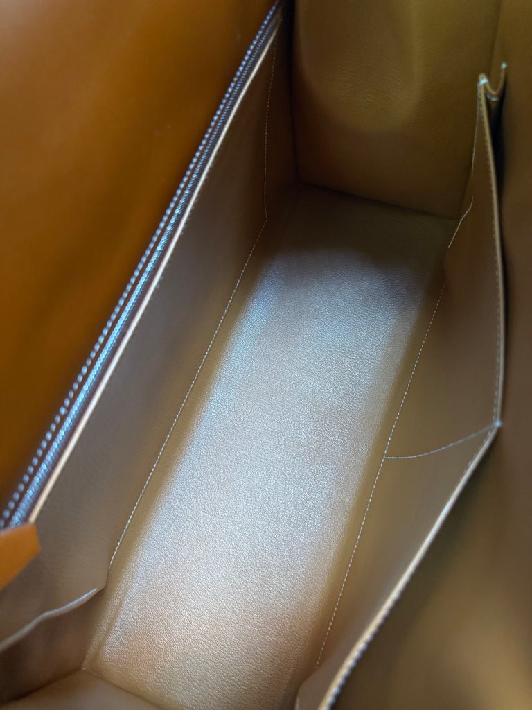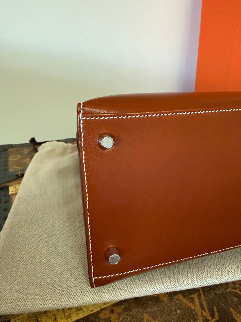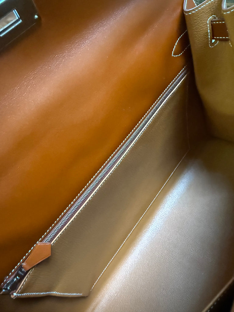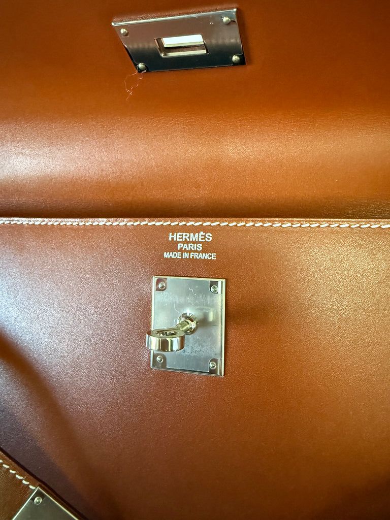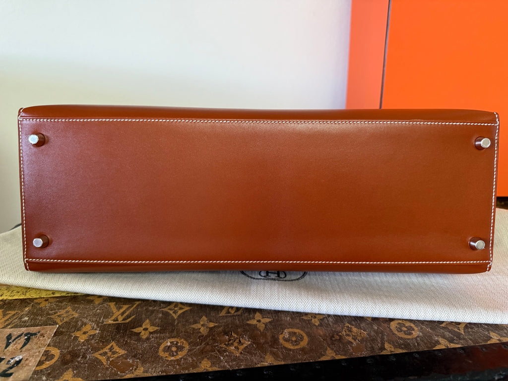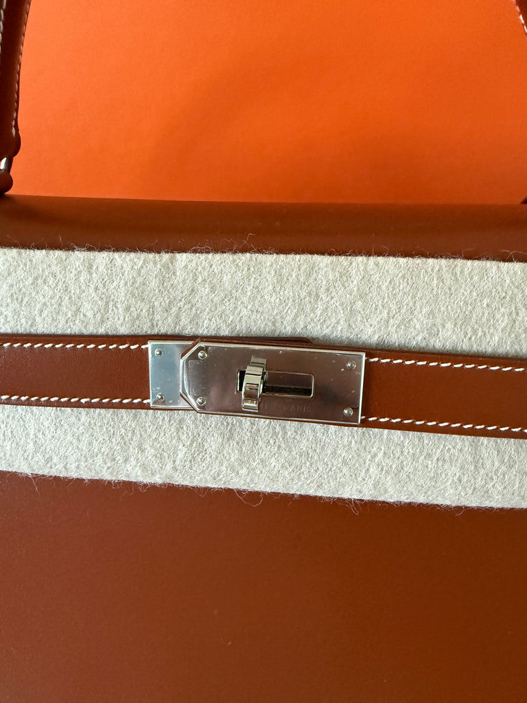 Borsa a mano con tracolla Hermès modello Kelly 40 in pellame tadelakt colore fauve, interno color gold. Anno 2021