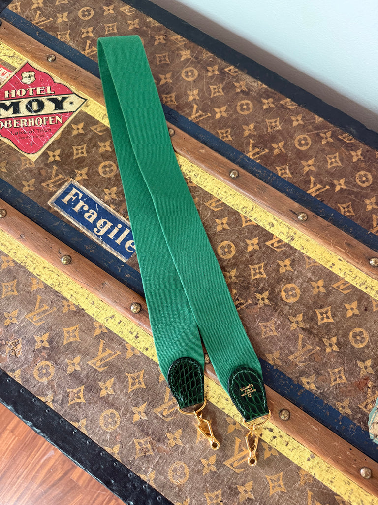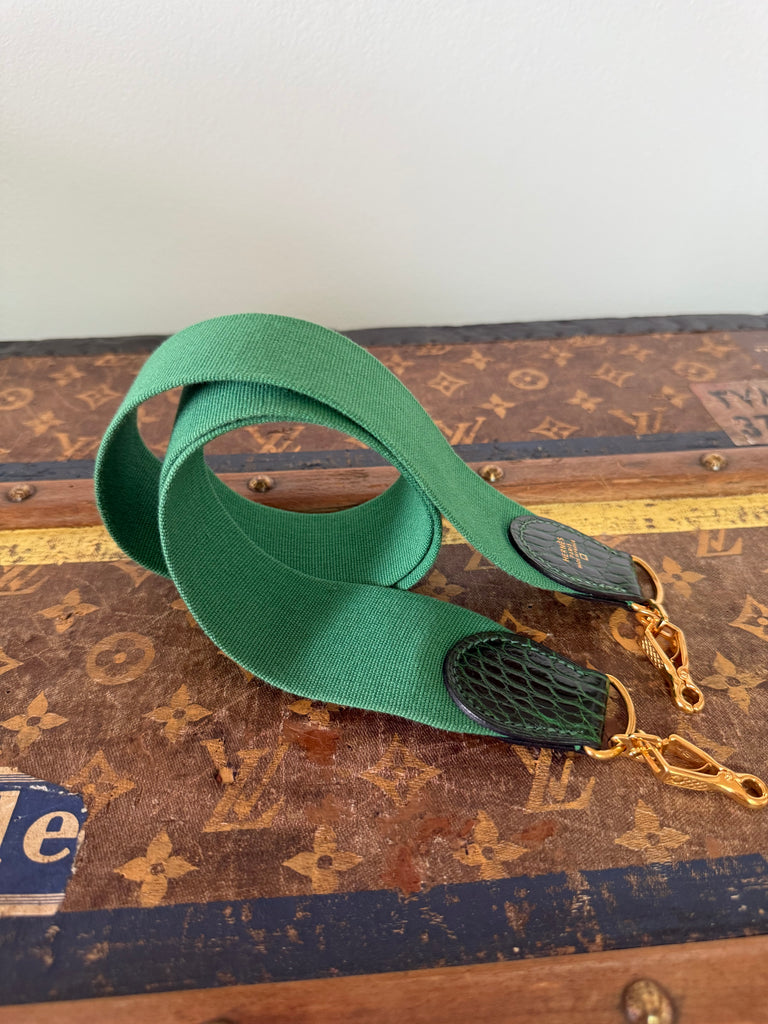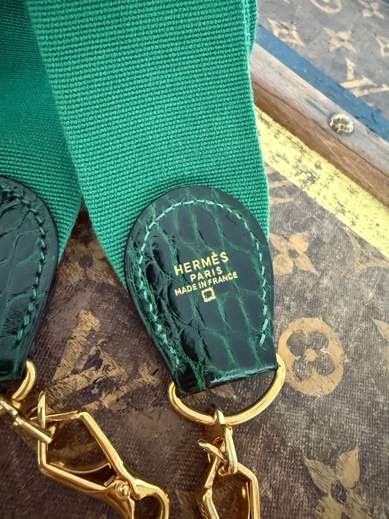 Tracolla Hermès modello Sport in tessuto color verde e inserti in pelle di alligatore.