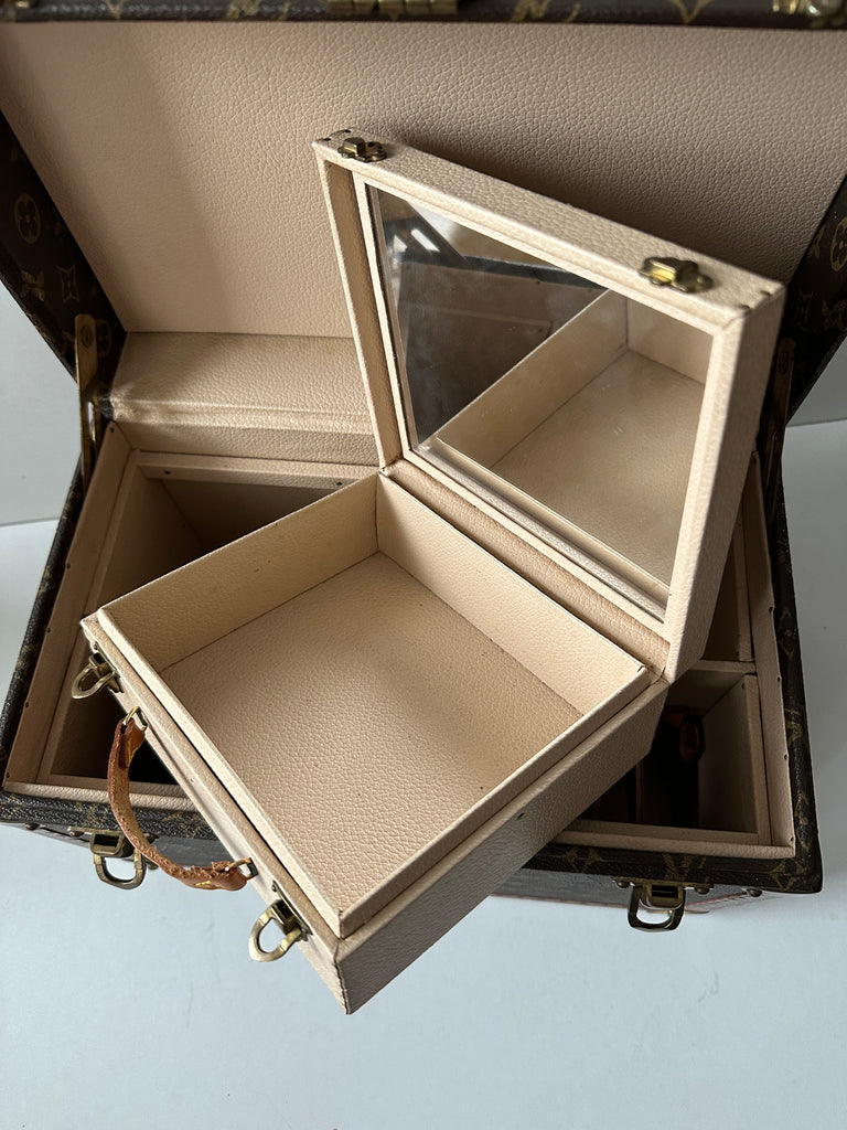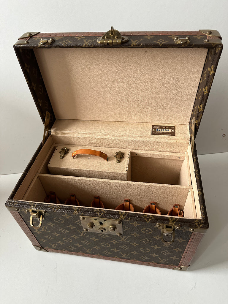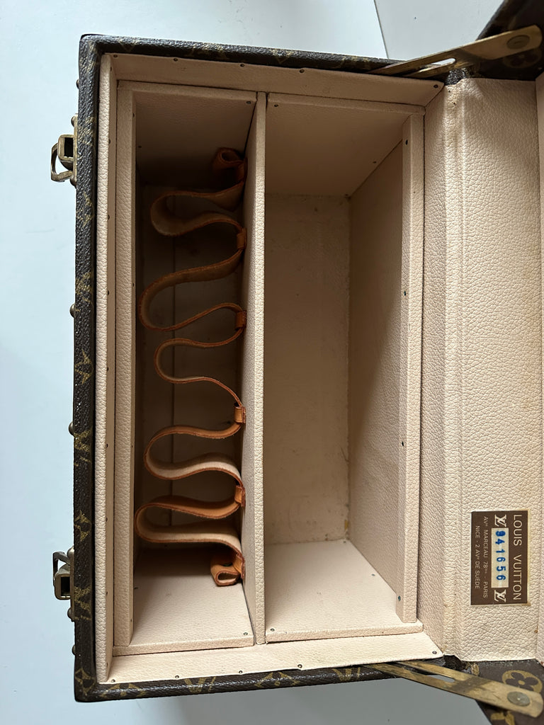Beauty Louis Vuitton modello Boîte à Pharmacie in tela monogram e vacchetta marrone. Anni '80.