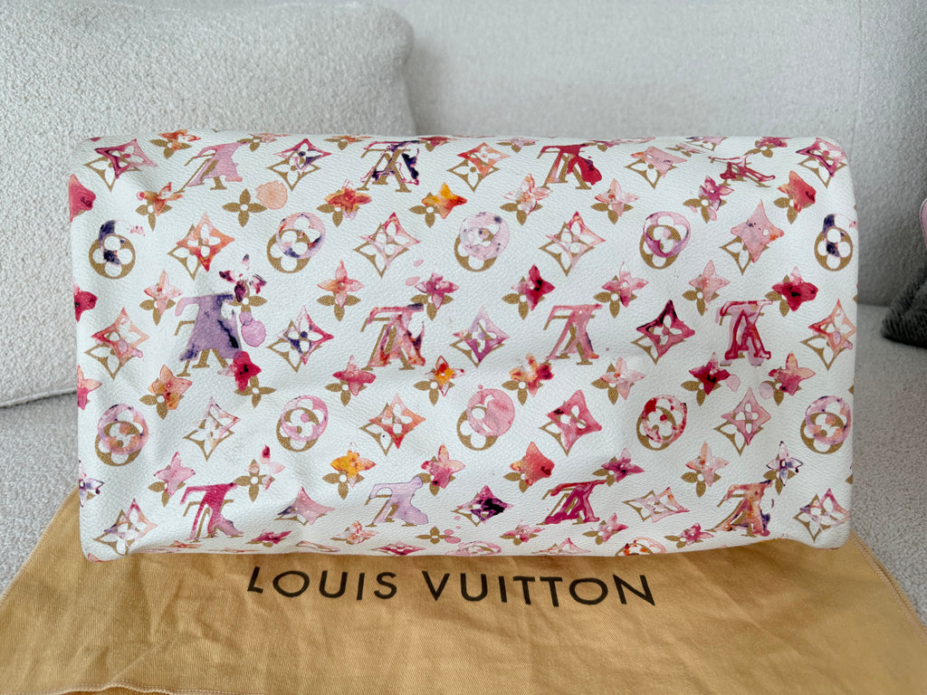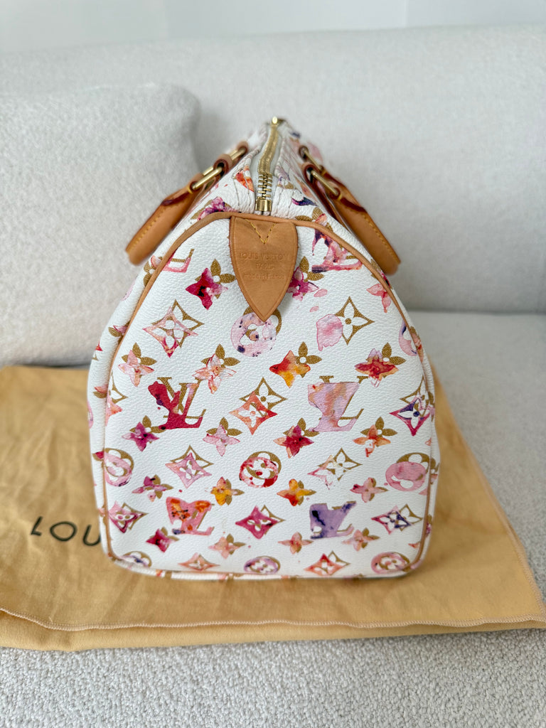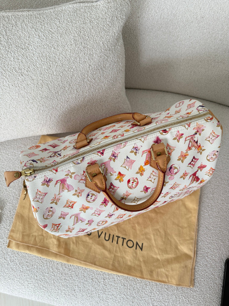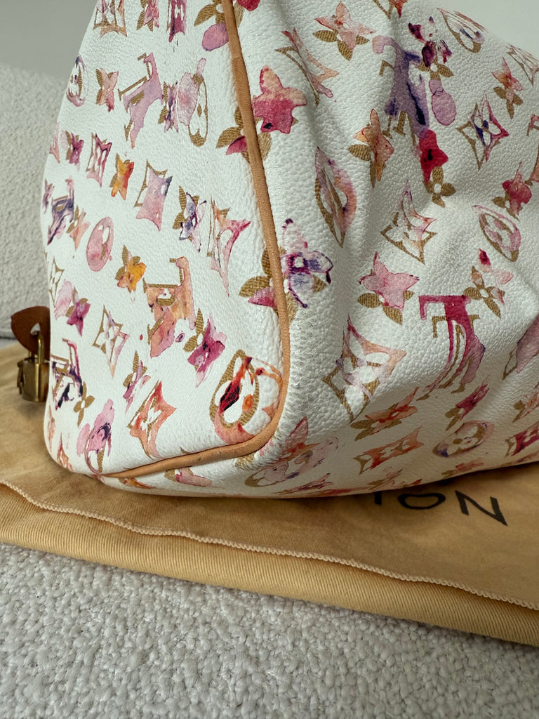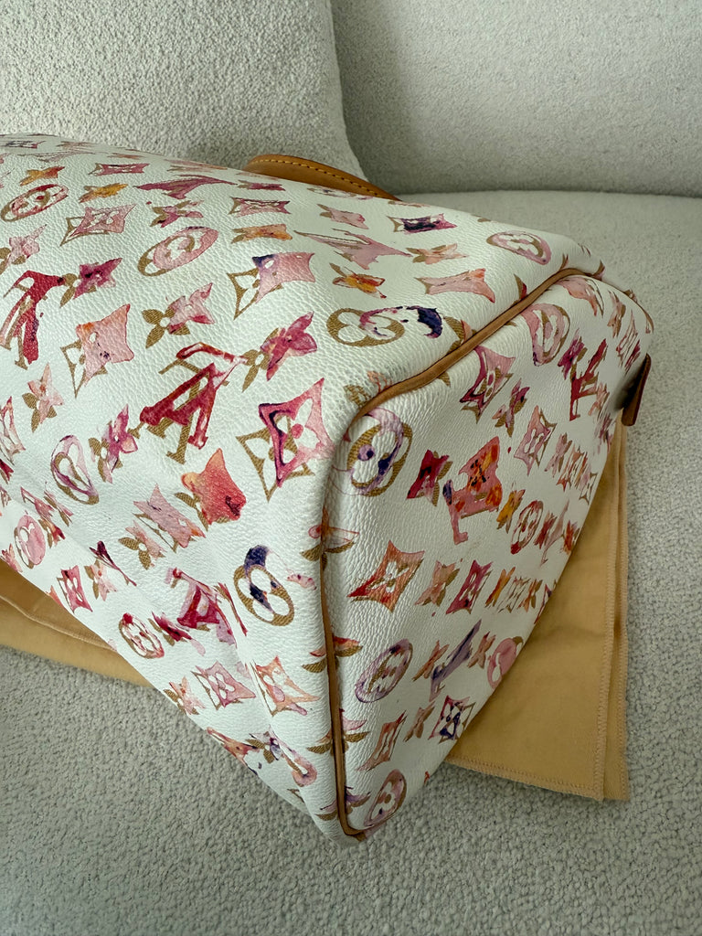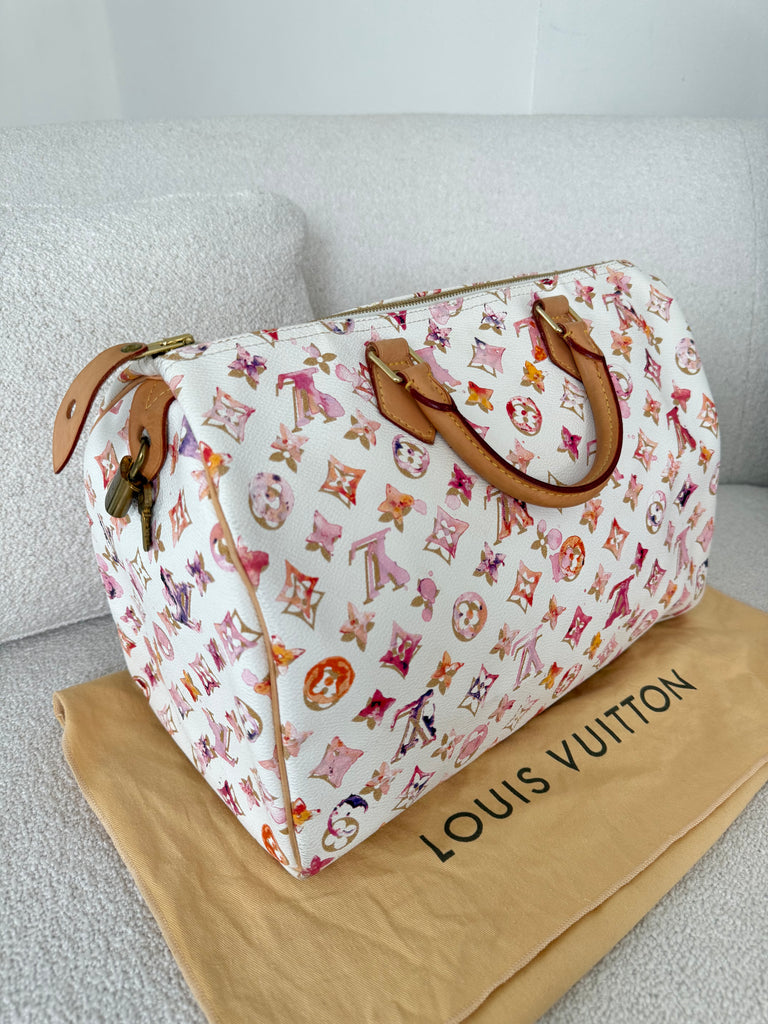 Borsa a mano Louis Vuitton modello Speedy 35 limited edition Acquarelle in canvas Monogram decorato da fantasie dipinte effetto acquarello
