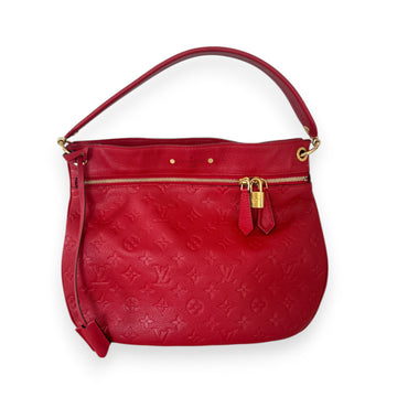 Borsa a spalla Louis Vuitton modello Spontini in pellame Empreinte color rosso e dettagli metalleria dorati.