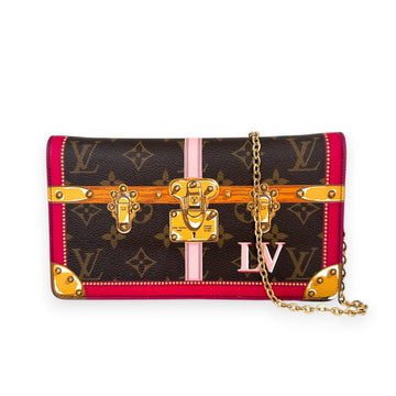 Portafoglio con catenella Louis Vuitton limited edition Summer Trunks anno 2018. In canvas monogram e dettagli bauli. Catenella amovibile dorata.