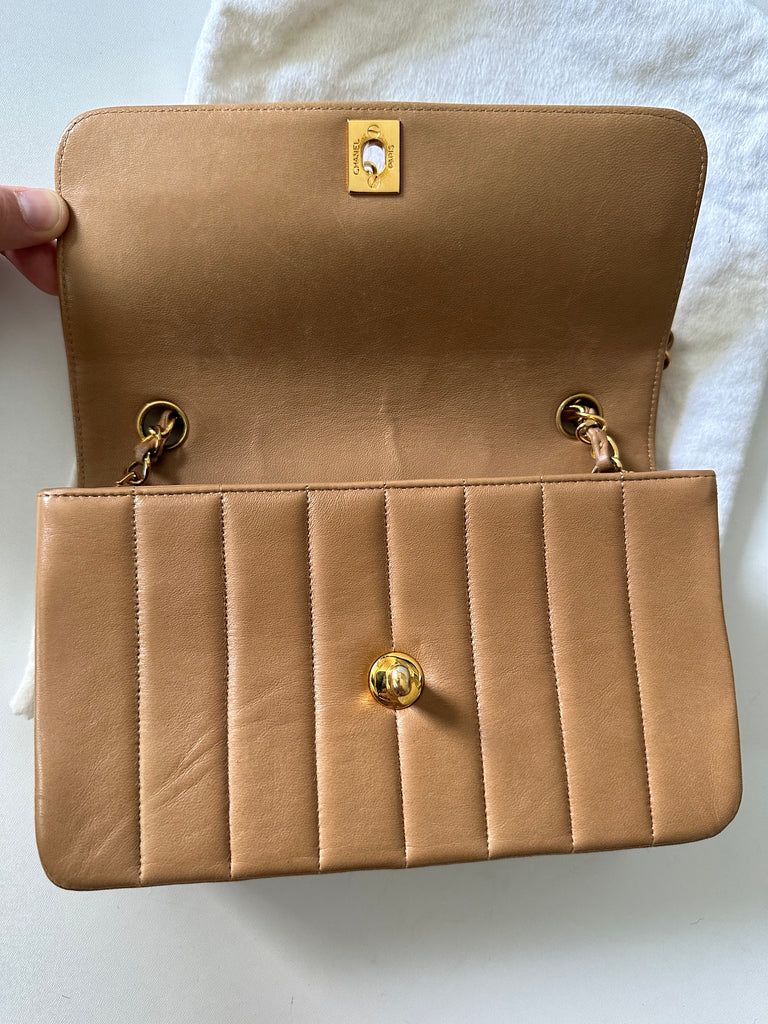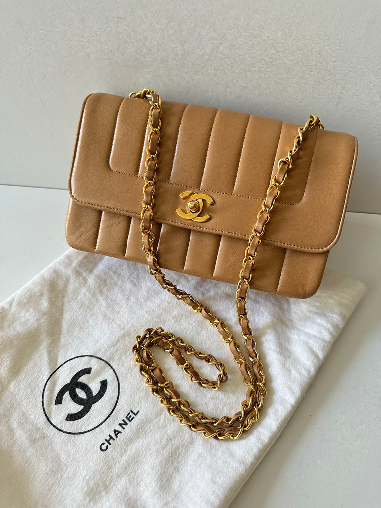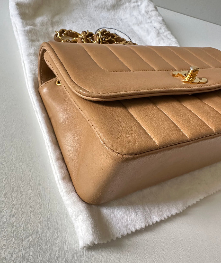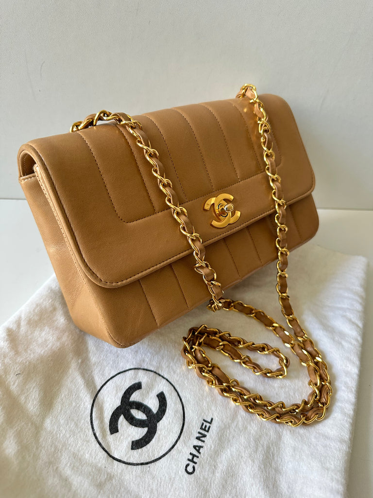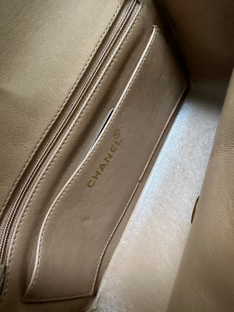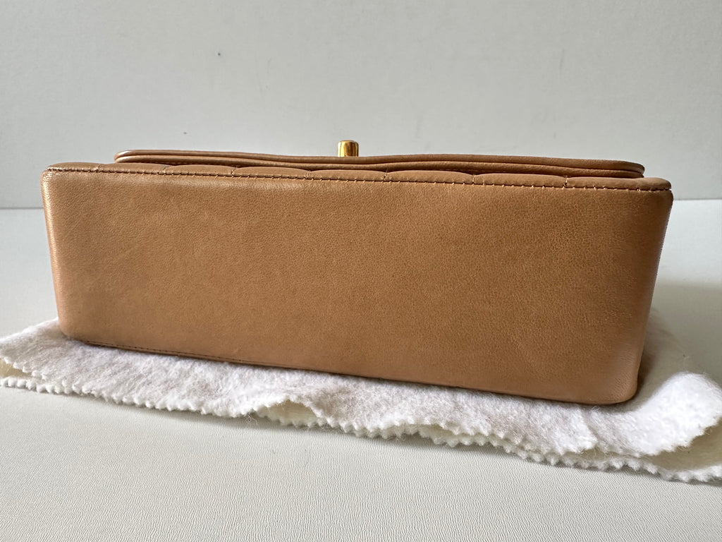 Chanel Borsa a Spalla Vintage in pelle d'agnello color biscotto e metalleria dorata.