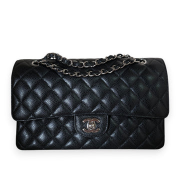 Borsa a spalla Chanel modello iconico Timeless misura Media 25 cm in pelle caviar nera e metalleria palladio.