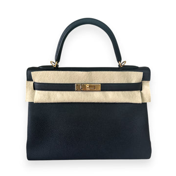 Borsa a mano con tracolla rimovibile Hermès modello Kelly 32 in pellame Togo color Nero e metalleria dorata. Anno 2025.