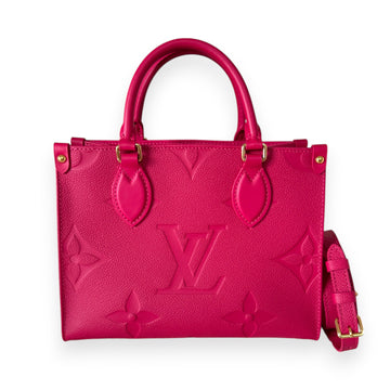 Borsa a mano e a spalla Louis Vuitton modello OnTheGo PM in pellame monogram empreinte color rosa Fresia.