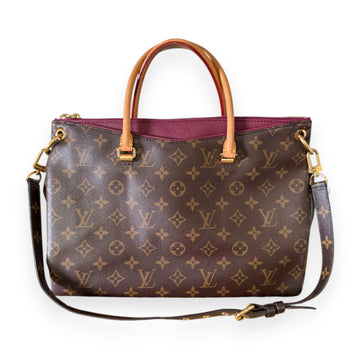 Borsa a mano con tracolla Louis Vuitton modello Pallas MM Aurore in canvas monogram, vacchetta naturale e interni in alcantara