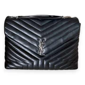 Borsa a spalla Saint Laurent modello Lou Lou misura Large in pelle d'agnello trapuntata nera e metalleria palladio.